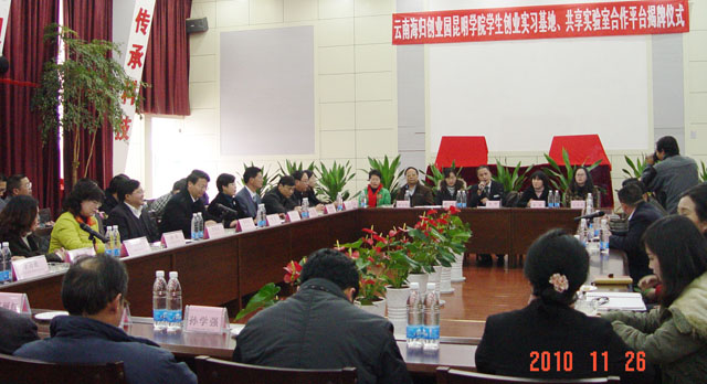 学院准备把图书馆、多媒体、实验室部分办学资源整合向经开区科研企业开放,派相关教授、博士为创业园服务;同时也欢迎园区内海归博士、相关人才到我院兼课教书、做实验,带入科研项目,以利指导我院中青年教师和学生;欢迎各企业单位多到beat365官方网站走走,共同把昆明市自己的大学办好,实现双赢。