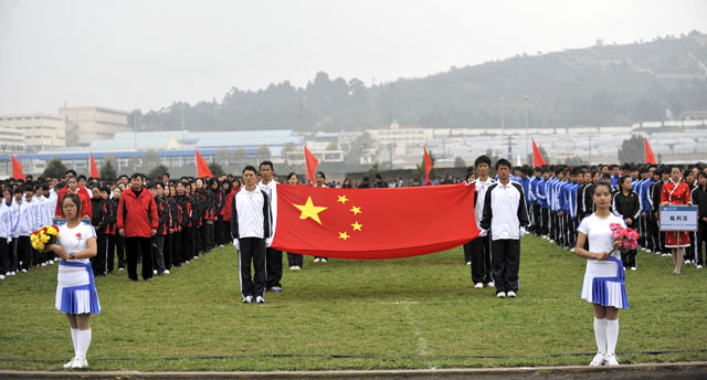 在各院系23支代表队入场后,全体起立,奏唱中华人民共和国国歌。陈世波院长兼运动会组委会主任致开幕辞。他指出,体育运动水平是一个国家文明进步的标志,学校体育运动是贯彻党的教育方针,培养全民发展高素质人才必不可少的全民体育运动的一部分。我院举办运动会不仅是为了检验我院体育教学成果和体育运动的水平,更是充分展示我院师生竞技水平和精神风貌,扩大学院影响的举措。运动会的举办,将会增强学院凝聚力,激发广大师生的拼搏精神、竞争意识和团结友谊,丰富校园生活,促进校园文化建设,为学院的发展注入了新的活力。在我院搬入新校园后,站在新起点,学院希望全院师生进一步弘扬更高、更快、更强的体育精神,加快学院内涵建设和跨越式发展。此次运动会,希望全体运动员严格遵守规则,发扬顽强拼搏、团结奋斗的精神,赛出竞技水平、赛出道德风尚、赛出团结友谊!