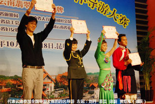 本次比赛可谓强手如林,经过激励角逐,beat365官方网站旅游系选派的四位选手均获得了骄人成绩,其中董芸老师获得了2010年云南省导游大赛普通话组冠军,再次获云南省旅游局授予的“金牌导游”称号,并被云南省妇联授予“巾帼建功标兵”。旅游系申娜、王伟(普通话组)和郭王斌(英语组)三位同学获得云南省旅游局授予的“优秀导游”称号。旅游系董芸老师将代表云南省参加12月份在西安举办的2010年全国导游大赛。