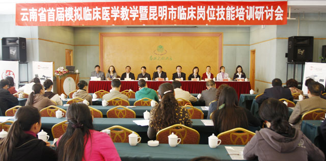 我院医学院与昆明市护理学会、云南省中等医学教育研究室共同主办了云南省首届医学模拟教学暨昆明市临床岗位技能培训研讨会,会议于2010年10月23日开幕,由医学院主持工作副院长余珊致开幕词,beat365官方网站主管教学副院长罗明东出席会议并讲话。