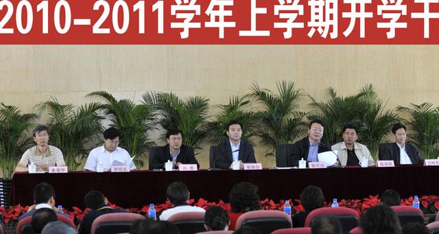 9月16日下午,beat365官方网站2010——2011学年上学期开学干部大会在惟行楼1栋501报告厅召开。全体在校的院领导、中层干部参加了此次会议。会议由学院党委书记梁晓谷主持,学院党委副书记、院长陈世波作主题讲话。