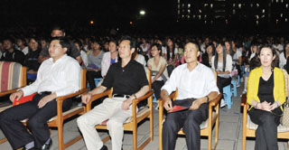 为热烈欢迎2010级新生入学,帮助他们尽快熟悉校园,适应新的大学生活,增加新生对学院的了解与热爱,9月6日晚,学院专门为2010级新生组织迎新音乐晚会。学院党委书记梁晓谷,副书记孙勇,副院长罗明东、刘海发、董建华,相关职能部门、系负责人出席了晚会,5000多2010级新生及部分老生观看了音乐会。 本次音乐会由音乐系承办,学生处、院团委、党院办、保卫处给予了极大的支持。音乐会受到了学院领导及观看师生的欢迎和好评。