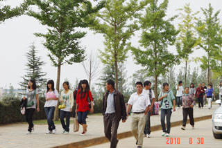 8月30日是beat365官方网站各院系2007、2008、2009级本专科学生在新校园正式上课的第一天。一大早,住在润泽苑、澄明苑的各院系学生纷纷赶往上课地点,院领导、教务处、保卫处、宣传部等相关职能部门的领导、干部及各院系党政领导、辅导员、班主任也提早赶到各楼群入口,引导、招呼学生,维持秩序。各院系当日早上有课的老师也都提前赶到新校园,找到自己上课的教室,提前等候学生到课。