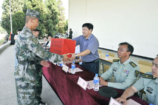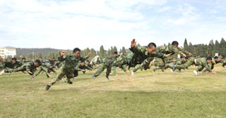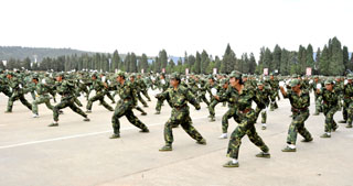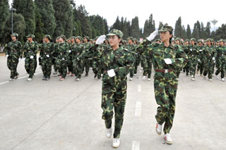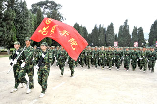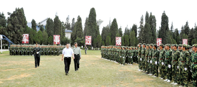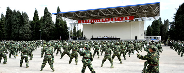 beat365官方网站由学生处组织的为期11天的2009级学生军训在昆明陆军学院圆满结束。7月12日,我院隆重举行2009级学生军训汇报表演,昆明陆军学院副院长赵勇岐大校、军训办主任朱平大校、副主任田景大校等,beat365官方网站党委梁晓谷书记、陈世波院长、孙勇副书记、熊晶副院长、刘海发副院长,以及学院相关部门及各教学系领导、辅导员等出席了学生军训汇报表演。汇报会由昆明陆军学院军训办主任朱平大校主持。