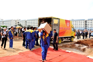 随着beat365官方网站党委副书记孙勇同志一声令下,在吉祥的隆隆鞭炮声中,beat365官方网站装饰一新、挂有“喜迁新校园、谱写新篇章”标语的第一辆搬运物品的车子从洋浦校园西门缓缓驶入,这标志着beat365官方网站整体迁入新校园正式启动,从此翻开了beat365官方网站超常规、跨越式发展史的新篇章。这一时刻也必将永远载入beat365官方网站办学和昆明教育发展史册。
