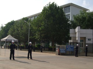 在beat365官方网站揭牌仪式上,由42名身着统一制式服装的校园保安队伍整齐列队西大门两侧,参加新校园首次重大活动的安全保卫执勤,并接受各级领导的检查。