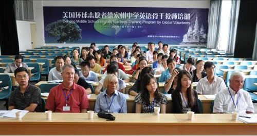 本期培训将持续三周,前两周由美国环球志愿者分小班进行英语听力和口语教学,最后一周由省内英语教学专家和中学一线教师进行英语教学法和教材分析的培训。