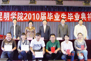 陈世波院长在毕业典礼上向2010届本、专科毕业生颁发毕业证书、学位证书及专科毕业证书。学院领导还分别向荣获2009年云南省大学生年度人物、国家奖学金、省级“三好学生”、“优秀学生干部”、“优秀毕业生”、院级“优秀毕业生”、励志奖学金、进步奖学金等荣誉称号的毕业生代表颁发了荣誉证书。