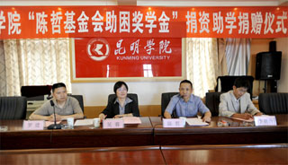 5月14日上午,我院在人民西路校区举行“陈哲基金会助困奖学金”捐资助学捐赠仪式。云南华天投资开发有限公司、云南太极华天科技有限公司董事长陈哲先生,办公室主任李德升先生莅临捐赠仪式。学院学生工作部(处)吴蓉处长、罗进副处长,10名受资助学生及相关辅导员参加了此次捐赠仪式。仪式由罗进副处长主持。