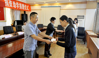 在捐赠仪式上,陈哲董事长对受资助的同学们提出三点希望:一要以“陈哲基金会助困奖学金”为契机,抛开生活压力,集中精力完成学业;二要努力提升学历层次,争取报考和攻读硕士研究生,三要以“感恩的心”回报学院,回报社会。