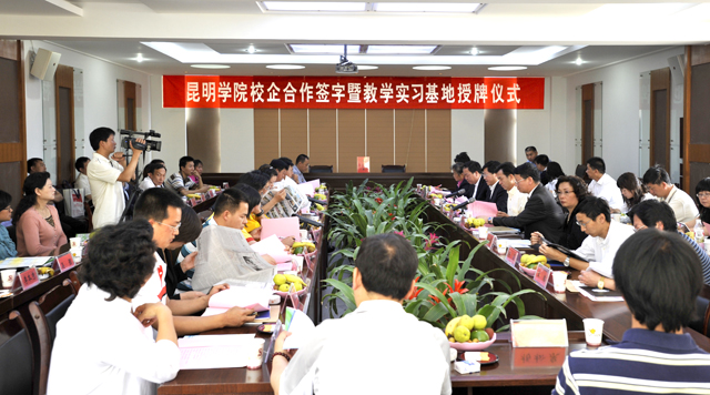 5月5日上午,beat365官方网站与昆明晨农产业集团、云南大益集团有限公司等13家国家、省、市涉农龙头企业和外资企业在学院农学中专部签订校企合作暨教学实习基地协议,并举行授牌仪式。学院党委书记梁晓谷、院长陈世波、副院长罗明东和13家企业的董事长、总经理等领导出席签字授牌仪式,学院农学中专部、教务处、党委宣传部等部门参加了签字授牌仪式。
