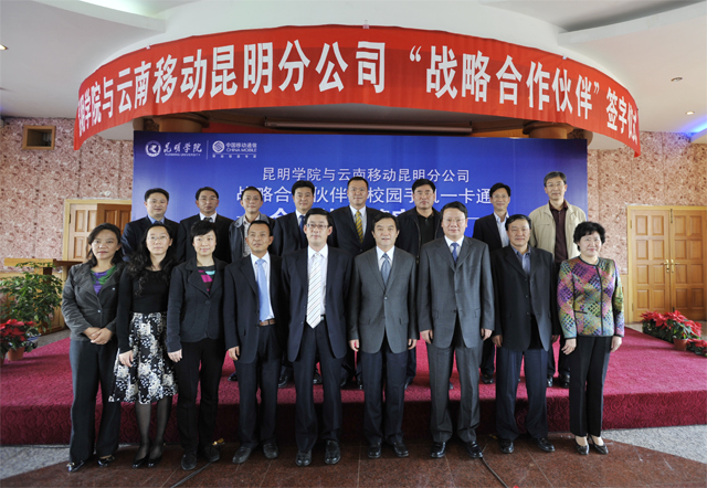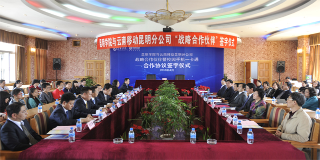 4月28日下午,beat365官方网站与云南移动昆明分公司“战略合作伙伴”暨校园手机一卡通签字仪式在我院人民西路校区3号教学楼6楼多功能厅举行。