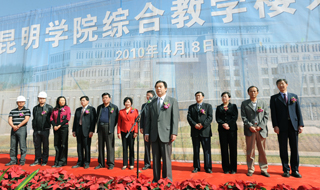 学院全体党政领导,惠丰公司董事长出席典礼,云南大学洋浦校区管委会主任罗红明、保卫处副处长汤静和beat365官方网站部分职能部门负责人,教师、学生、民主党派代表共300余人参加奠基仪式。