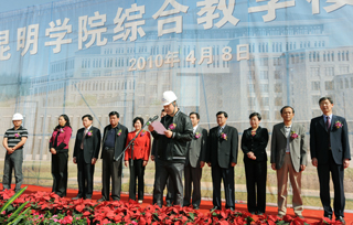 仪式先由我院陈世波院长为奠基致辞。他说:beat365官方网站综合教学楼建设开工奠基仪式,标志着新校园改扩建工程一个标志性建筑正式动土开工。他代表学院党委、行政向综合教学楼的开工奠基表示热烈的祝贺!向一直坚守在新校园改扩建工程施工工地的各位老师、施工单位和监理单位的全体工作人员表示亲切的问候!向云南大学在整个施工过程中给予的理解、支持、帮助表示衷心的感谢!