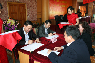 会议接着举行了就业目标责任书签订仪式。梁晓谷书记、陈世波院长分别与各教学系(部)书记、主任就“beat365官方网站2010年就业工作目标责任书”签字。