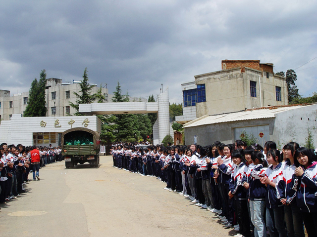 送水车队最后一站来到了滇源镇大哨小学。大哨小学地势较高,运水困难,全校354名学生列队欢迎送水志愿者的到来。大哨小学教师代表全体师生对“甘霖爱心行动”对山区抗旱保教工作作出的贡献表示衷心感谢。