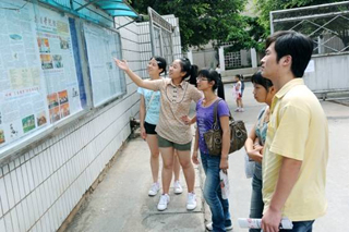 学生阅读室外放大版的院报