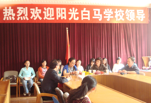 3月18日下午,学院新挂牌成立的实习就业基地——昆明西山区阳光白马学校尹芳校长、梁蕾荧书记到初教系洽谈毕业生实习就业工作。系主任李晋德、辅导员以及系2010届50多位有意向到白马学校实习、就业的同学参加了洽谈会。