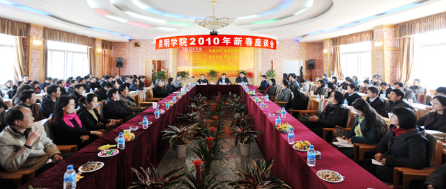 辞别金牛,迎来瑞虎,在结束了一个学期紧张繁忙的工作、2010年新春佳节即将到来之际,1月18日下午,我院2010年新春座谈会在人民西路校区3号教学楼6楼多功能厅举行。学院梁晓谷书记、孙勇副书记,张寿国、罗明东、董建华副院长,学院各单位负责人、教职工代表,民主党派、无党派人士、侨台联代表,离退休教职工代表共计120余人参加了座谈会。会议由学院党委孙勇副书记主持。