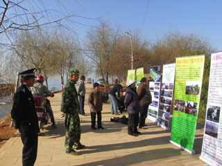 1月20—22日,考察组重点考察了宝象河湿地公园、海河入湖口和大清河入湖口,实地踏勘了海埂公园、神牛水乡、盘龙江入湖口等建设点。考察组同时对呈贡县生态带建设情况进行了为期两天的考察。重点考察了横跨江尾、斗南、梅子等几个村庄的洛龙河入湖口生态带,参观了村庄污水处理站,和村民进行了座谈,并就湿地知识和中心情况向当地群众进行了宣传,
