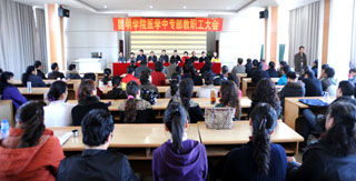 陈世波院长在会上作重要讲话。陈院长首先对两校成为beat365官方网站大家庭中的成员表示欢迎,同时感谢两校领导班子和全体教职员工,在合并期间积极按照市委市政府和学院有关指示、工作部署所做的工作,肯定两校为顺利并入beat365官方网站所做的工作和努力。他说农学和医学中专部都有50多年的办学历史和丰富的办学经验,为昆明市培养了大批的农学和医学技术人才,为我省的经济社会发展,尤其在培养农业和医疗运用型技术人才上做出了很大贡献。他指出,在两校区分别召开教职工大会,标志着两校合并到beat365官方网站的各项基础工作圆满告一个段落,两校工作已进入学院统一部署轨道上来,今后要适应学院的大发展,全面实施战略转移,集中精力抓内涵建设,努力提升学院核心竞争力。陈院长最后对农学、医学中专部负责人和广大教职工提出五点希望:一是统一思想。统一思想对合并非常重要,是工作顺、人心和、事业兴的关键。要把思想统一到市委市政府的指示上来,统一到今天学院党委在教职工大会的工作部署上。二是提高认识。提高认识是做好各项工作的前提和保证,希望学院广大干部和教职员工要把认识提高到高等教育上来,转变到提升本、专科的办学和教育质量上来。三是增进团结互相学习。合并完成后的beat365官方网站是一所学科齐全的综合性应用型本科院校,在文化和思想上形成了多校融合的独特的多元文化,这些都需要有一个思想的适应和转变过程,需要我们在工作中团结一致,互相学习,这样才能变不利为有利,变阻力为动力。四是加强建设。beat365官方网站的合并工作及今后的建设发展,一直得到市委市政府的关怀和大力支持。学院今后的建设发展,主要应放在学科与专业建设上,进一步提升本、专科办学和管理水平,加强科研建设,做好社会服务工作,为社会培养更多的适应社会需求的应用型人才。