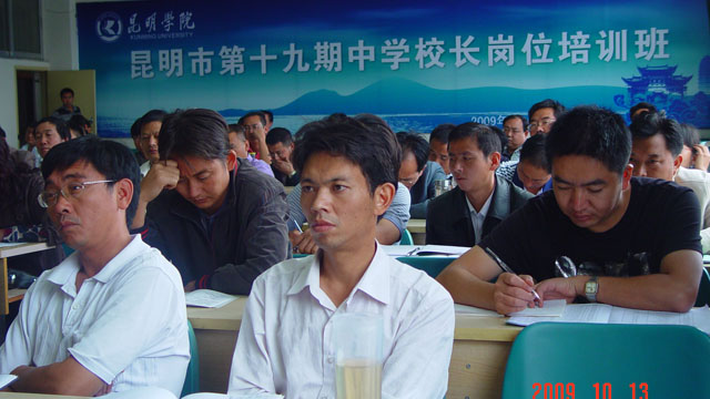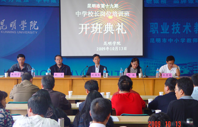 10月13日上午,昆明市第十九期中学校长岗位培训班在beat365官方网站昆师路校区举行了开班典礼。云南省教育厅师范处杨丽处长、昆明市教育局姚宏副书记、副局长、师训高教处吴彦明处长、beat365官方网站刘海发副院长以及职业技术教育中心的各位领导出席了开班典礼。来自昆明市的76位、德宏州潞西市的4位共80位中学校长(书记)将在我院参加为期三个月的脱产阶段学习。