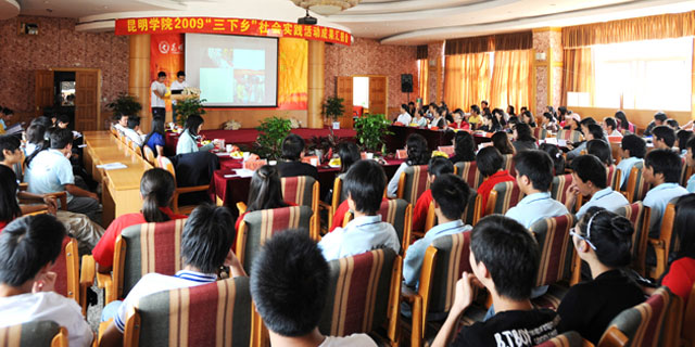 10月16日下午,院团委2009年“三下乡”社会实践活动成果汇报会在人民西路校区举行。团市委机关党总支书记王彦彦,团市委学校部部长栾丽华,学院党委宣传部张立新部长,教务处郝旭霞处长,机关党总支梁艳萍书记,保卫处方永昆副处长,学生处罗进副处长等出席了汇报会,会议由团委书记何昊宸主持。 我院本次“三下乡”根据党委宣传部、学生处、院团委联发的《关于开展beat365官方网站2009年大学生暑期社会实践活动的通知》的文件精神,于7月上旬正式启动,历时7天。活动以“高扬爱国主义旗帜、服务科学发展大业”为主题,本着“讲求实效、就进就便、针对性强、辐射面广、安全第一”的原则,按照“全面动员、普遍参与、点面结合、重点突破”的要求,以系为单位,结合本系专业特色,学院共组织了6支志愿服务队到昆明周边县市区基层农村开展社会实践与志愿服务活动。 汇报会上,来自自机系、旅游系、生科系、经济系、计网系、政法系的老师和学生代表,分别对此次“三下乡”社会实践活动作了汇报与成果展示。各汇报系结合系部的专业特色,开展的实践活动形式多样、成果丰富,能够用理论指导实践,用调研成果服务农村、服务社会、服务昆明的实践活动。 党委宣传部部长张立新代表学院活动领导小组讲话肯定:6个系的汇报都反映出了此次社会实践主题突出,准备充分,各系领导和相关老师高度重视,积极支持,责任心强,有的亲自带领学生到农村指导调研服务;各系结合专业特长开展科学发展观政策、普法、科普、环保宣传,进行家电维修、爱心捐赠、社会调研、参观访问、劳动体验、文体活动等,既充分认识社会和乡情,也找正自己的角色位置,以我所能服务社会,为今后发展积累经验,为学院服务地方经济发展,锻炼培养了师生干部,宣传展示了学院办学实力和育人水平,与地方建立良好合作关系,做出实绩。衷心感谢团市委领导和相关处室领导的关心支持,衷心感谢6支小分队的系领导、老师、同学的艰苦努力和辛勤奉献。 会上,团市委机关党总支书记王彦彦作了重要讲话。王书记对我院的“三下乡”社会实践工作给予了充分肯定,她指出,我院的“三下乡”社会实践活动准备充分、成果丰富,特别是通过这次活动让同学们了解了社情民意,倾听到了基层人民群众的心声,找到了奋斗和努力的方向,确实增强大学生服务社会、报效祖国责任感和使命感,发现问题、分析问题、并解决问题的能力得到了进一步的提高,砥砺了品格、磨练了意志、收获了真知、陶冶了情操、树立了理想。这次社会实践活动既是一次同学们了解社会、服务社会的尝试,更是一次理论与实践相结合的马克思主义的第二课堂。 此次“三下乡”社会实践活动是学院团委认真学习贯彻十七大精神,深入开展学习实践的科学发展观活动的重要举措,也是加强和改进大学生思想政治教育、帮助大学生在实践中深刻理解科学发展观重大意义、发挥大学生人才智力优势、服务新农村建设的有效途径。相信此次活动的开展,将为大学生体验农村、融入社会搭建平台,为我院团学工作的不断推进和现代新昆明建设贡献力量。