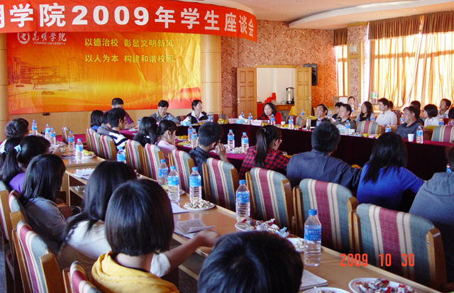 为期两天的beat365官方网站2009学年学生座谈会于10月29日、10月30日分别在龙泉路校区、新迎路校区、人民西路校区(含昆师路校区学生)、体院路校区举行。我院孙勇副书记、熊晶副院长,院办、学生处、教务处、团委、保卫处、后勤处等学生工作指导委员会相关成员单位领导、各校区综合办以及城建系、美艺系等系部的相关负责人分别出席在各校区举行的学生座谈会,听取并现场解答了部分同学提出的意见和建议。参加此次学生座谈会的各系学生代表共计130余人。