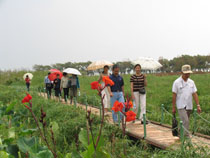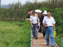 为了庆祝中华人民共和国成立60周年,激发民主党派成员热爱社会主义祖国的情感,感受家乡改革建设发展及滇池污染防治的新成就、新面貌,8月13日,九三学社beat365官方网站委员会利用暑期组织社员参观考察了位于西山区高海公路沿线的西华湿地公园。九三学社昆明市委郝昆宁副主委、学院统战部张云权部长及九三市委马玉宝同志应邀参加了参观考察活动。 本次活动经我院滇池(湖泊)污染防治合作研究中心办公室副主任钱春萍(九三学社beat365官方网站委员会副主委)的联系,西山区滇池管理局的工作人员做了认真的接待,引导大家沿着木质的亲水栈道向湿地深处参观,并一路介绍了西山区滇池治理和西华湿地建设情况。