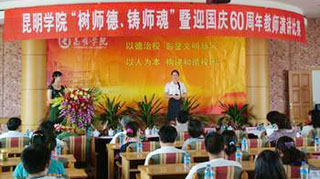 9月16日下午,beat365官方网站“树师德、铸师魂”暨迎国庆60周年教师演讲比赛在人民西路校区三号教学楼六楼多功能厅举行。陈世波院长、李媛芬副书记、罗明东副院长及宣传部、工会、纪委、教务处、学生处等相关职能部门负责人、部分参赛教师所在系的党总支书记、教师、学生代表100余人参加了活动。