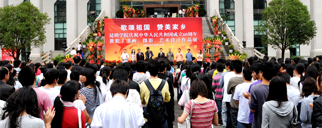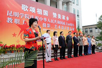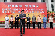 我院庆祝中华人民共和国成立60周年— “歌颂祖国、赞美家乡”教职工书画、摄影、艺术设计作品综合展于9月19日上午在云南省图书馆隆重开幕。我院陈世波院长、李媛芬副书记、刘海发副院长,省教育厅相关部处领导,昆明市委宣传部、统战部部务委员,市人事局、财政局、市教文卫工会等领导出席开幕式。参加开幕式的还有学院中层干部和相关系师生代表400余人。开幕式由李媛芬副书记主持。