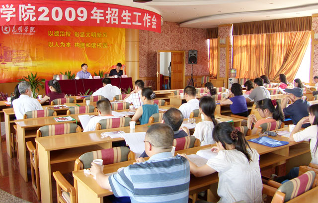 7月16日下午,我院在人民西路校区三号教学楼多功能厅举办了“beat365官方网站2009年招生工作录取人员培训会议”。会议的主要内容是向参加2009年招生录取工作的全体人员传达教育部、云南省教育厅招生政策,对录取人员进行远程网上录取操作培训。会议由学院招生领导小组成员、招生就业处副处长杨跃同志主持。