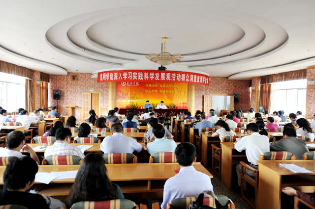 根据中央、省委和省高校工委深入学习实践科学发展观活动办公室的统一部署,按照《中共beat365官方网站委员会关于开展深入学习实践科学发展观活动实施方案》的安排,学院党委于8月26日下午在人民西路校区三号教学楼六楼多功能厅,召开了beat365官方网站深入学习实践科学发展观活动群众满意度测评会议。学院领导及全体中层干部、“两代表一委员”、民主党派基层组织负责人、基层教师代表、专家学者、党外知识分子、学院深入学习实践科学发展观活动领导小组办公室全体成员130余人参加了此次会议。会议及现场测评由学院党委副书记、院长陈世波主持。