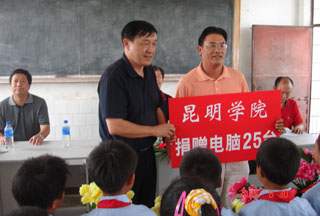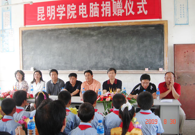 8月30日下午,我院为新农村建设指导员驻村两小学捐赠电脑,捐赠仪式在陆良县三岔河镇太家头小学举行。学院党委副书记孙勇、组织部长董建华、副部长张士芬一行六人代表beat365官方网站专程赴太家头小学出席捐赠仪式。三岔河镇、村领导及太家头小学师生参加了此次活动。