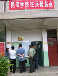 检查组领导查看了学院开展应届毕业生入伍预征的宣传、报名情况,到就业指导办公室进行了走访,对学院开展的入伍预征工作给予了肯定。检查组指出:要进一步加大应届毕业生入伍预征的宣传动员,报名时间可延长到7月中旬。特别是欠学费和助学贷款的贫困生可享受国家代偿学费和助学贷款的优惠政策,相当于免费上大学。而且在使用、提干、退役后继续升学方面都享有国家优惠,是毕业生就业的较好渠道。