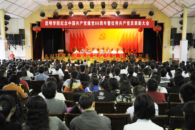 6月30日下午,beat365官方网站庆祝中国共产党成立88周年暨优秀共产党员表彰大会在昆师路校区大礼堂隆重召开。学院党委委员、中层党员干部、各基层党组织的委员、在职及离退休党员代表、参加入党宣誓的新党员及入党积极分子代表等800余人欢聚一堂,共庆党的生日。大会由学院党委副书记、院长陈世波同志主持。