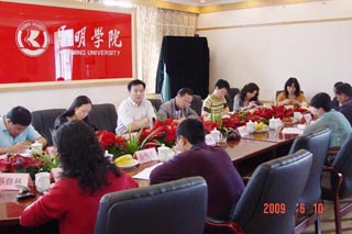 会上,梁晓谷书记、熊晶副院长介绍了beat365官方网站育人、科研、服务社会的功能,介绍了学院搭建的科研与服务社会的两个平台——昆明科学发展研究院和昆明滇池(湖泊)污染防治合作研究中心的职能和运作情况,着重介绍了第一次“昆明科学发展高层论坛”的举办情况和即将举办的第二次论坛的准备情况,提出了围绕第二次论坛主题展开研讨的思路,强调了论坛的开放性、针对性和实效性。