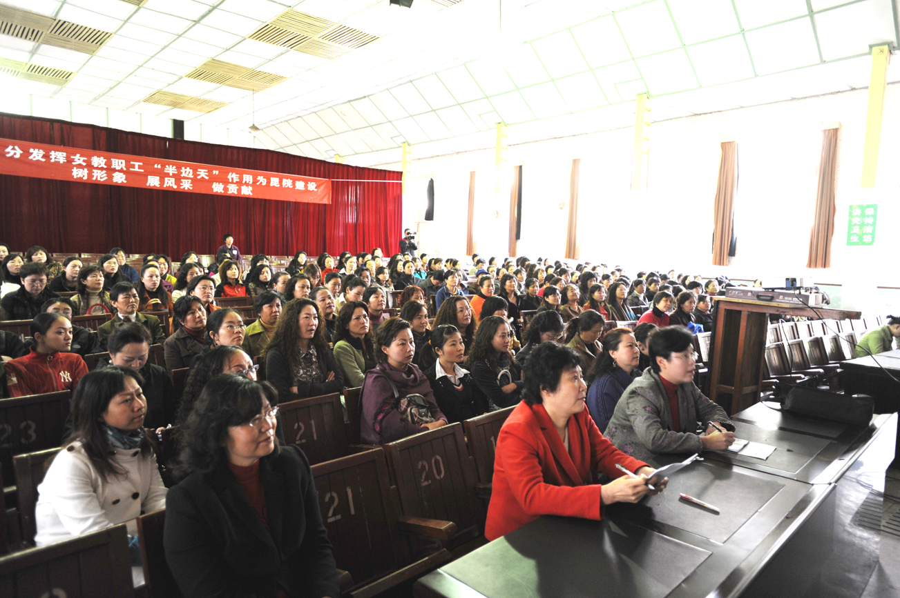 3月5日上午,我院在昆师路校区大礼堂举行了beat365官方网站2009年纪念“三八“国际劳动妇女节大会暨礼仪讲座。学院李媛芬副书记、熊晶副院长以及全院200多名女教职工参加了会议。会议由李媛芬副书记主持。会议邀请到云南艺术学院副院长潘红教授为大家做了“现代女性形象礼仪”的专题讲座。潘教授通过精彩讲授及大量图片的展示,为我们指明了现代女性在工作、生活中如何做到自信、优雅、智慧并重的秘诀,鼓励大家通过内在的文化和修养,成就外在优雅、自信的形象。