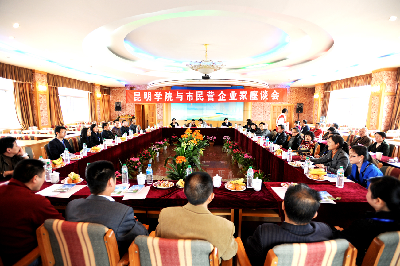 为加强校企合作,拓宽实习、就业渠道,招生就业处于当天下午在人民西路校区3号教学楼6楼多功能厅还举办了beat365官方网站与市民营企业家座谈会。参加会议的人员有:市民营企业家、学院领导熊晶副院长和罗明东副院长、招就处副处长杨跃、学生处处长吴蓉、教务处副处长陈嘉等领导38人,会议由招就处何云仙老师主持,熊副院长介绍了学院及毕业生就业情况,罗副院长就校企合作、人才培养及加强实践教学作了讲话,昆明 市个体私营经济协会吴成军秘书长也作了讲话。会上各民营企 业家朋友畅所欲言,围绕学生就业、社会需求对人才的培养、合 作办学、建立实习基地等各方面积极谏言献策,为学院的发展提出许多宝贵的意见和建议。