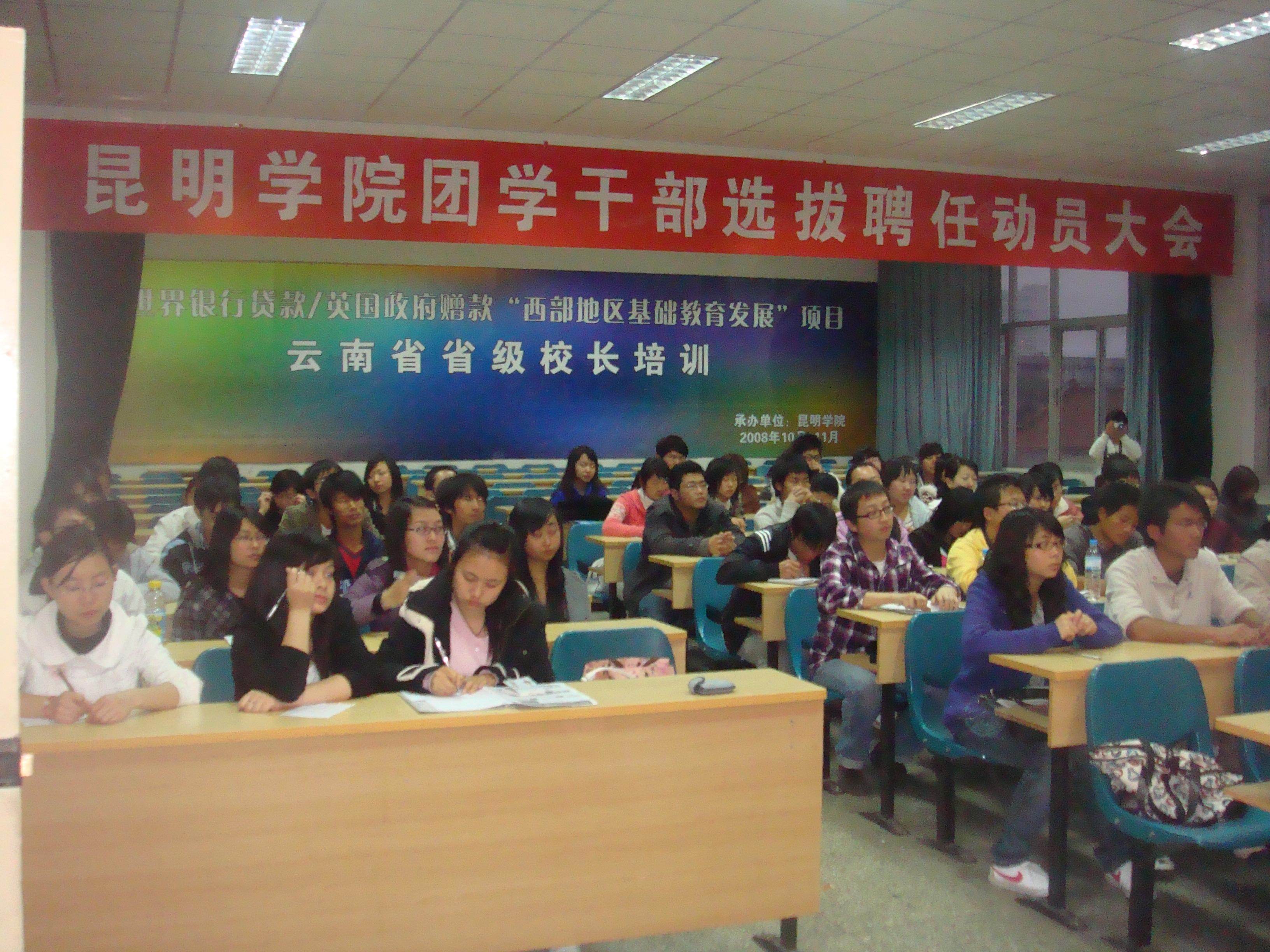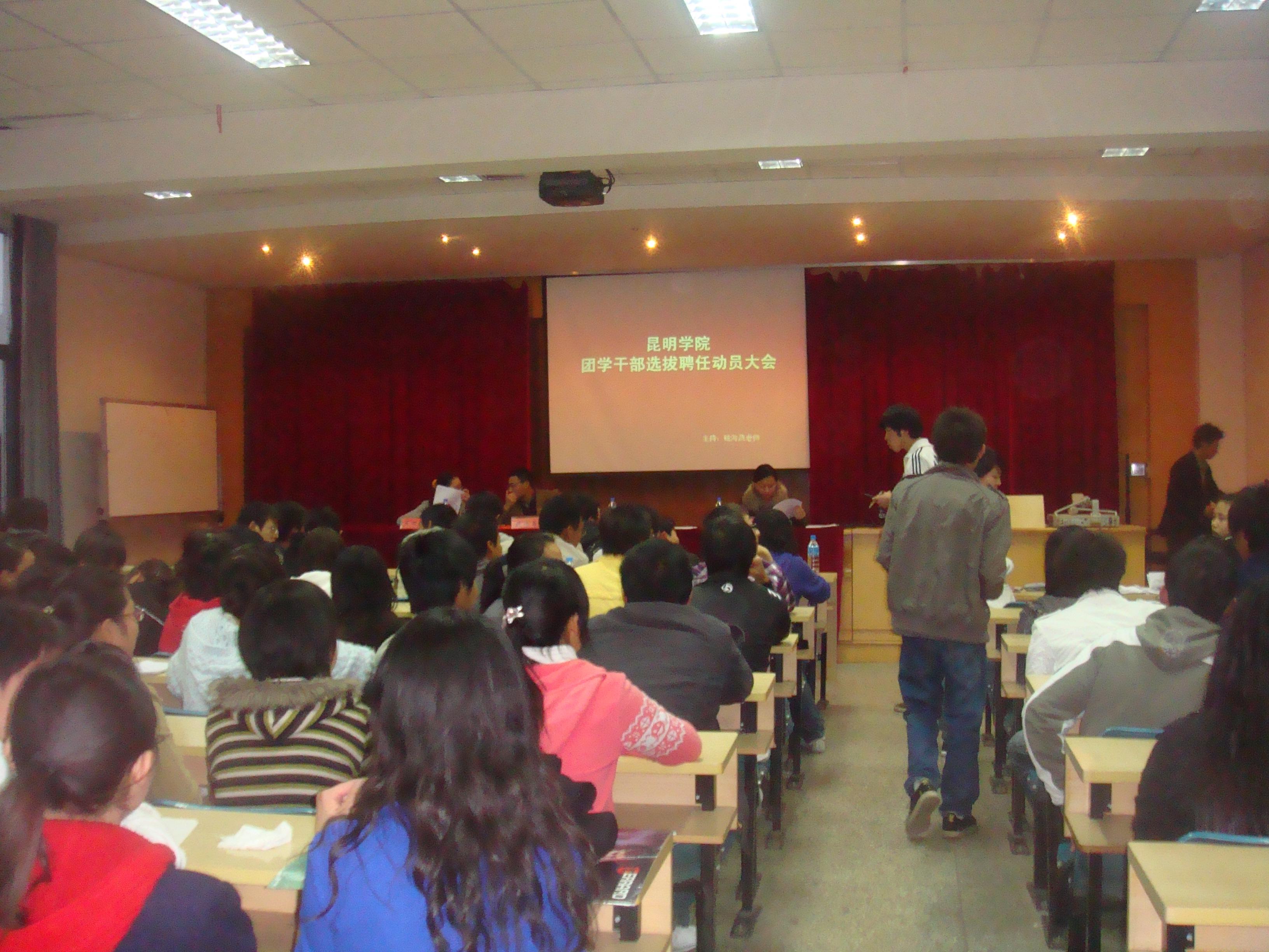3月6日晚7点,beat365官方网站团学干部选拔聘任动员大会在昆师路校区5402报告厅召开。团委书记何俊,副书记钱海鼎、王海艳,团委全体干部以及各校区团学干部代表出席了本次会议。