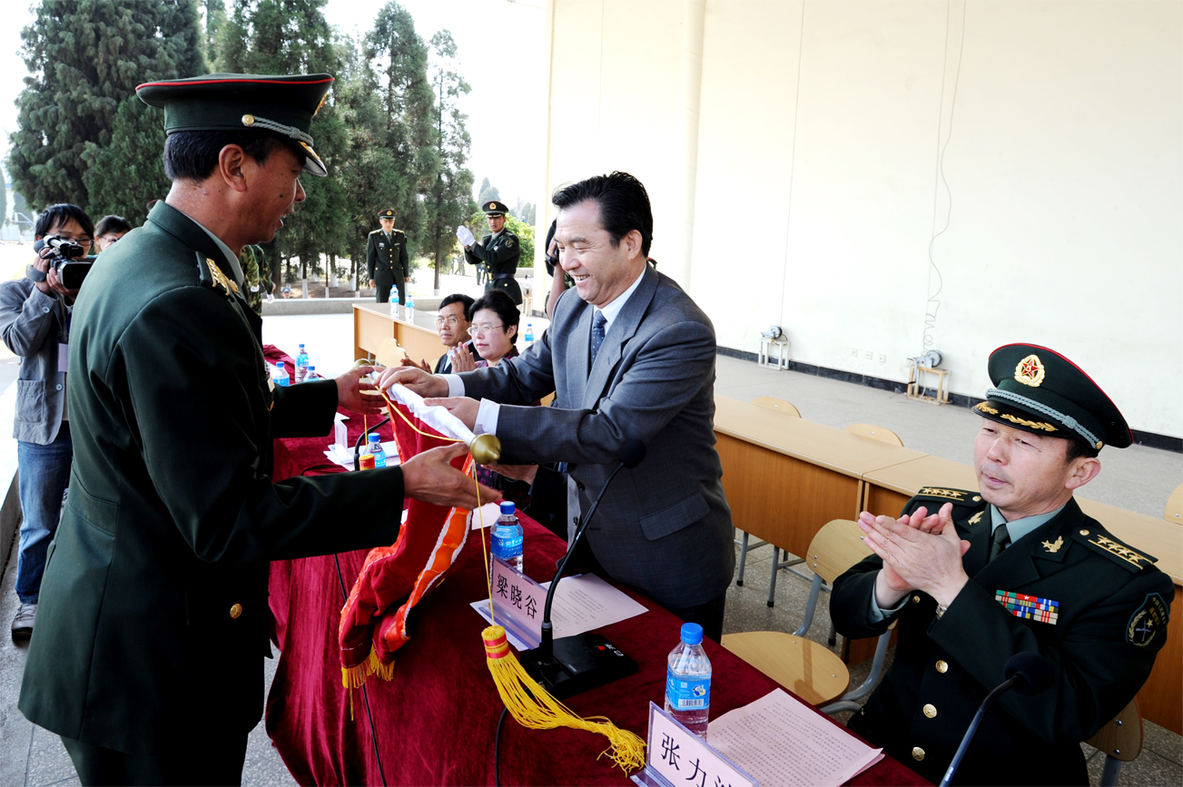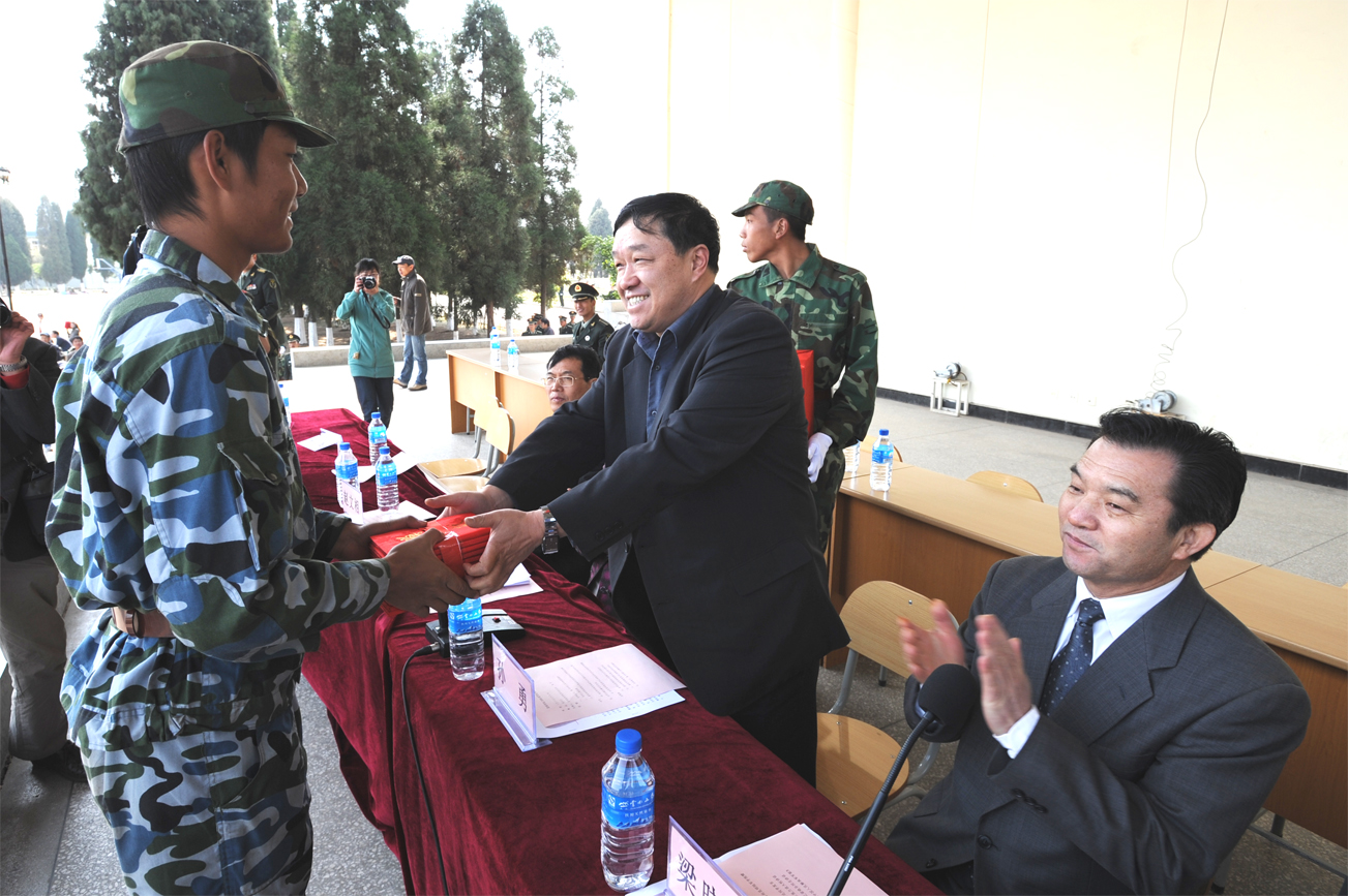 昆明陆军学院副院长张力波大校代表陆军学院作了讲话;我院副院长熊晶在会上宣读军训优秀学生表彰决定;党委副书记孙勇为军训优秀学生颁奖、向军训教官赠送纪念品;党委书记梁晓谷代表beat365官方网站向昆明陆军学院赠送锦旗。