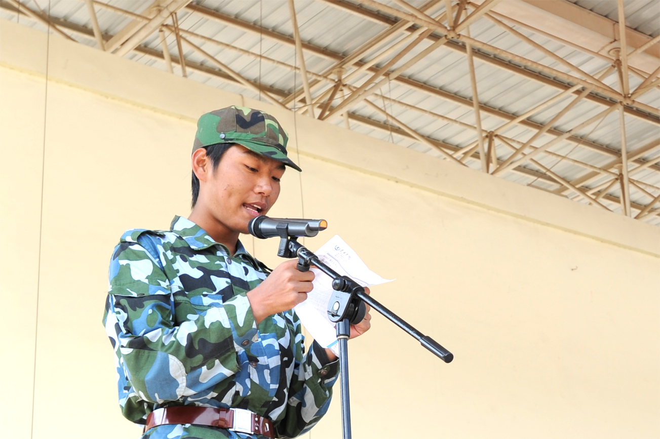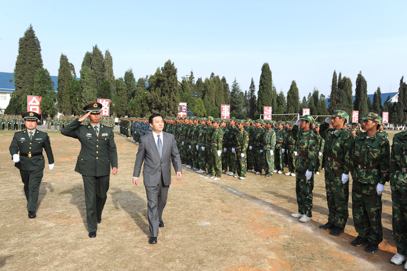 3月13日清早,昆明陆军学院的训练场上已是暖意浓浓,虽然伴随着阵阵凉风,却挡不住我院3127名军训新生接受军训检阅和汇报表演的热情与渴望。训练场上身着迷彩军训服的各受阅方队在教官高亢有力的军令声中紧张有序地整装列队,等待接受学院党政领导及陆军学院首长的检阅。