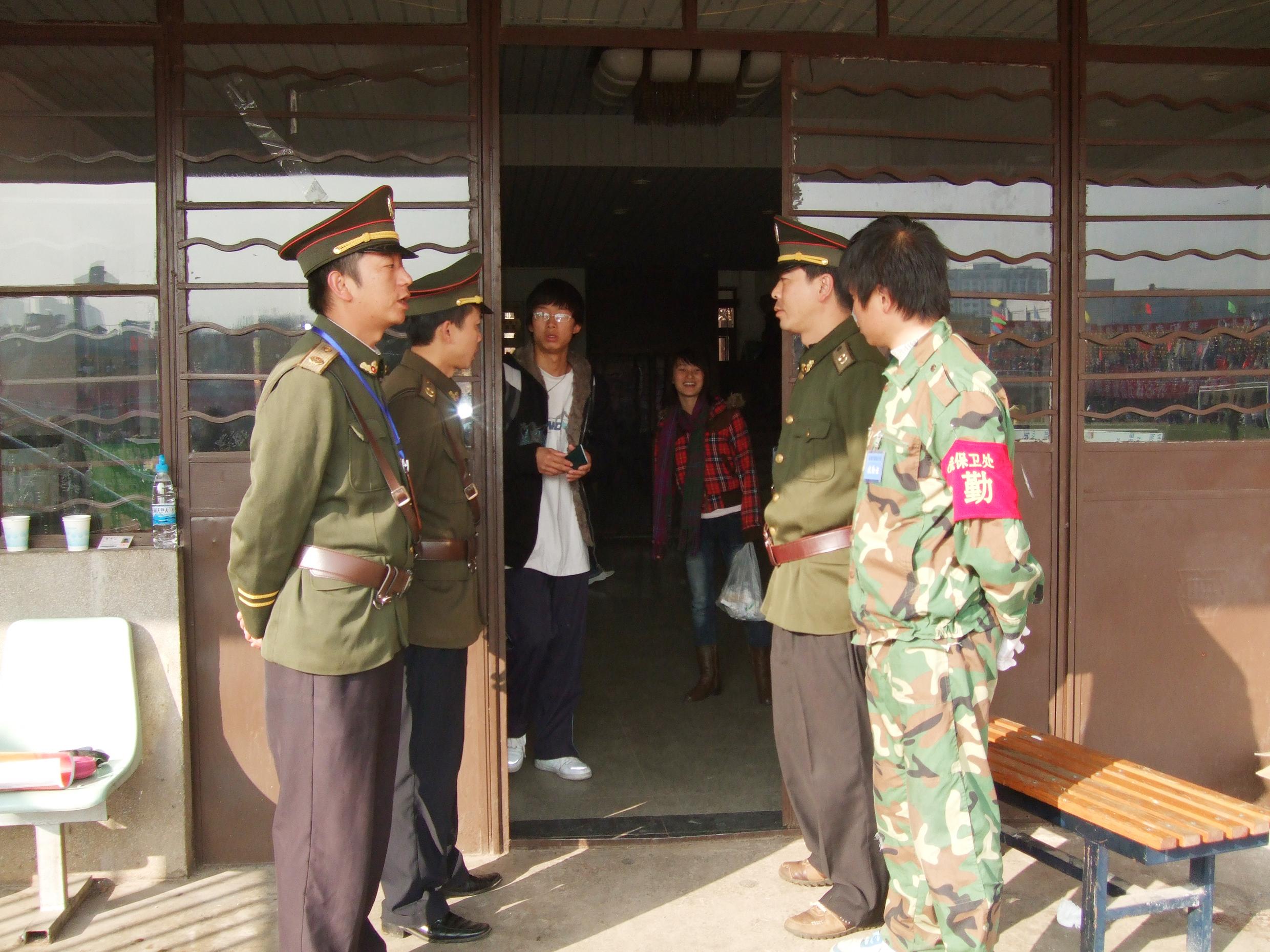 由于本次运动会为beat365官方网站正式合并后的首次运动会,师生人数众多,规模空前,为确保3天的运动会安全、有序,为全院师生营造一个平安、有序、和谐的运动会环境,保卫处按照本届运动会组委会工作安排,成立了以陈兆雄副院长为总指挥的安全保卫领导机构,制定了《beat365官方网站2008年冬季运动会安全保卫工作方案》,抽调各校区保卫干部、校卫队员、学生治安服务队共60余人参加了本次运动会。保卫处先后几次召开专题会议,认真对安全保卫工作进行部署,还就工作方案进行了明确分工,落实具体责任。其中,主席台保卫组,负责主席台的安全保卫和主席台下两侧入口的执勤,杜绝无关人员进入主席台;场地组负责运动场内各项比赛场地的安全保卫和秩序维护、处置突发事件,保证比赛安全、正常进行;看台巡逻组负责做好各看台的安全防范、巡逻检查工作;场外组负责来宾和工作车辆的引导指挥和管理、场外秩序、巡逻和做好后勤保障工作。北门组(检录处)负责北门的管理,对进出人员进行检查,保证运动员检录工作的正常进行。
