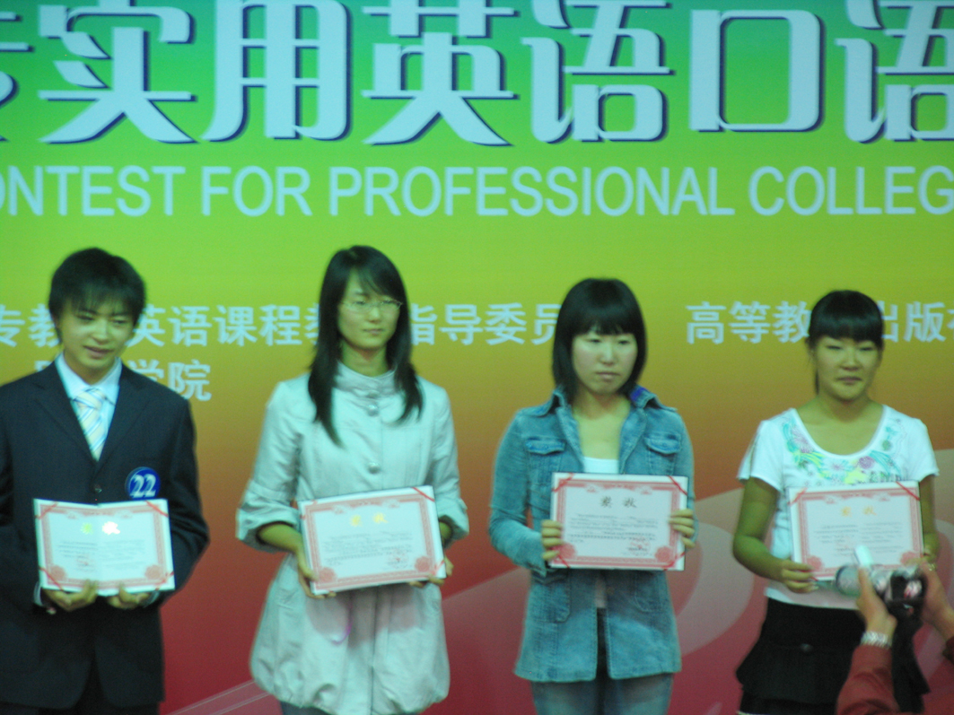 在全场精彩纷呈的演讲比赛中,来自全省30所高职高专院校的31名参赛选手,分别通过脱稿发言、口头陈述和情景交流三个部分共计6分钟的演讲,再由国内外专家、教授组成的评委打分,专家点评,最后评选出一等奖2名、二等奖6名、三等奖12名和11名优秀奖。