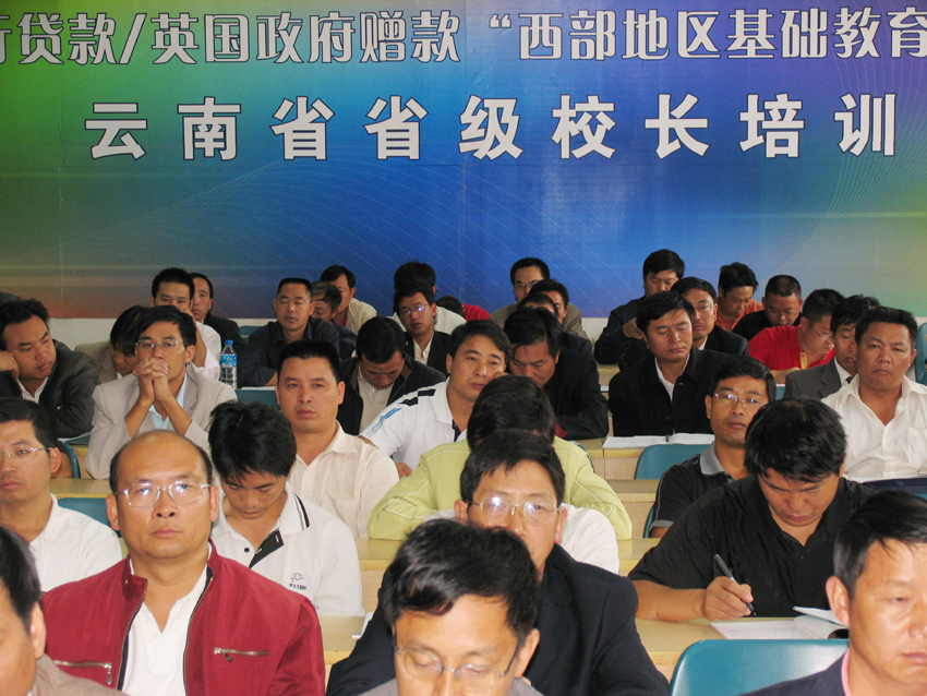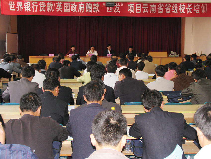10月 20日上午,世行贷款/英国政府赠款“西发”项目云南省省级校长培训班在昆师路校区举行。省教育厅外资贷款办卢宇辉主任和陈兆雄副院长出席开班仪式并分别讲话。来自全省30个项目县的123名中小学校长参加了开班仪式。