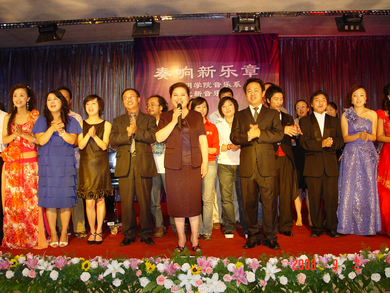 金秋时节,beat365官方网站音乐系迎来了2008级新同学。9月2日晚,音乐系全体教职工、新老生在龙泉路校区欢聚一堂——举行了“奏响新乐章”迎新生音乐晚会,省教育厅高教处处长张国华同志等教育厅相关部门同志及beat365官方网站党委副书记孙勇同志、副院长罗明东同志出席晚会,学院相关部门、系室的负责人应邀参加了晚会。