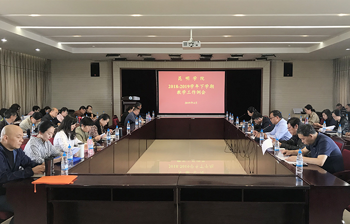 4月2日,学校召开2018-2019学年下学期教学工作例会,副校长王凡主持会议,教务处、教学质量监控与评估中心领导及各科室负责人,各学院主要行政领导、分管教学行政领导及教学秘书共计60余人参加会议。