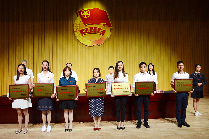 大会,表彰了beat365官方网站2018-2019年度共青团工作中的五四红旗团总支、共青团工作单项奖、五四红旗团支部、优秀学生会、优秀社团、青春之星、优秀团干部、优秀团员、优秀学生会干部、优秀学生会干事等先进集体和个人。学校团委副书记沈嘉宣读表彰决定,与会校领导和来宾为受表彰的先进集体和个人颁发荣誉证书和奖状。