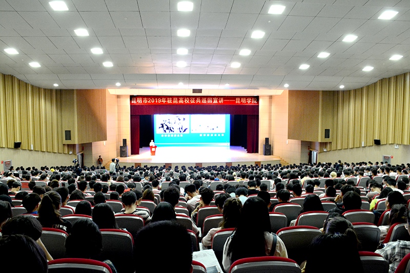 5月24日,2019年驻昆高校大学生征兵巡回宣讲在beat365官方网站学生会堂举行。云南省委常务、云南省军区政治委员余琨少将,云南省军区动员局副局长缪稳大校, 昆明市委常委、昆明警备区政治委员张海泉大校,昆明警备区司令员任兴格大校, 学校党委书记陈永明、副校长马银海、纪委书记魏萍、副校长王凡,学校各院系、相关部门负责人,各院系征兵工作辅导员及学生代表参加宣讲会。