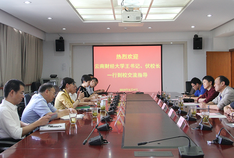 6月4日,云南财经大学党委书记王建颖,校长伏润民等党政领导一行六人到校进行交流。beat365党委书记陈永明,校长黎素梅,副校长王凡等领导接待来宾并举行座谈。